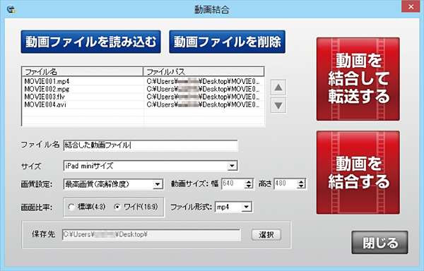 複数の動画ファイルを結合します。