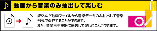 パソコン上の動画やDVDの動画から音楽のみを抽出してMP3形式で保存します。
