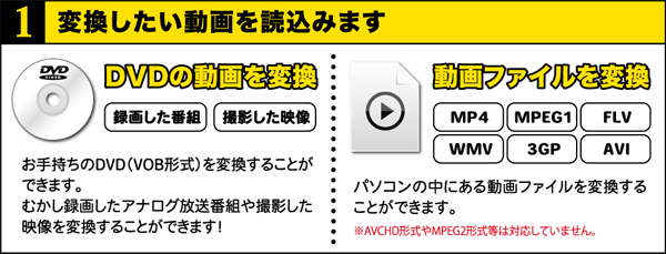 「誰でもできる動画変換5」は、お手持ちのDVDやパソコン上の動画ファイルを