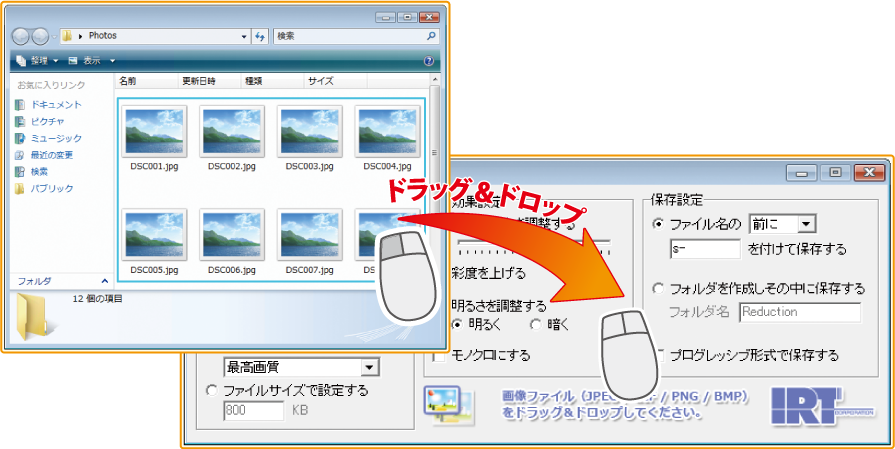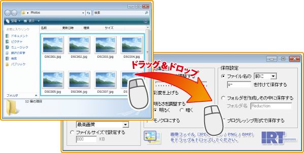 縮小したいデジカメ画像を『デジカメ画像一括縮小』にドラッグ&ドロップするだけで