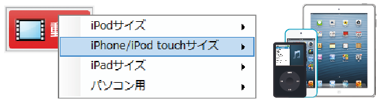 「iPod」「iPhone/iPod touch」「iPad」の画面サイズに合わせた動画のダウンロードや