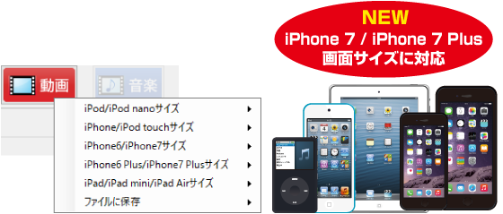「iPod」「iPhone/iPod touch」「iPad」の画面サイズに合わせた動画のダウンロードや
