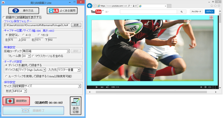 ※パソコン上で画面キャプチャができない場合は見たまま録画を行うことができません。