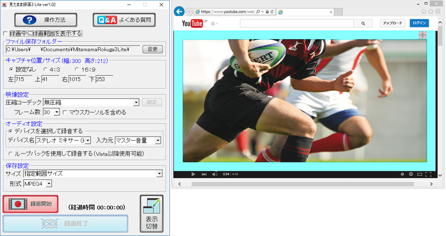 かんたん操作でパソコン上で再生している動画を見たまま録画できます。