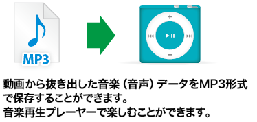 音楽(音声)のみの場合はMP3のファイル形式で保存することができます。