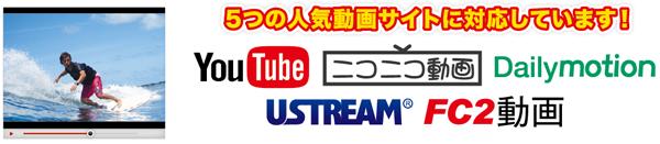 「YouTube」「ニコニコ動画」「Dailymotion」「Ustream」「FC2動画」の動画や