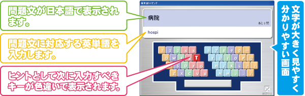 中学生レベルの簡単な英単語問題を通じてタイピングの練習をする、