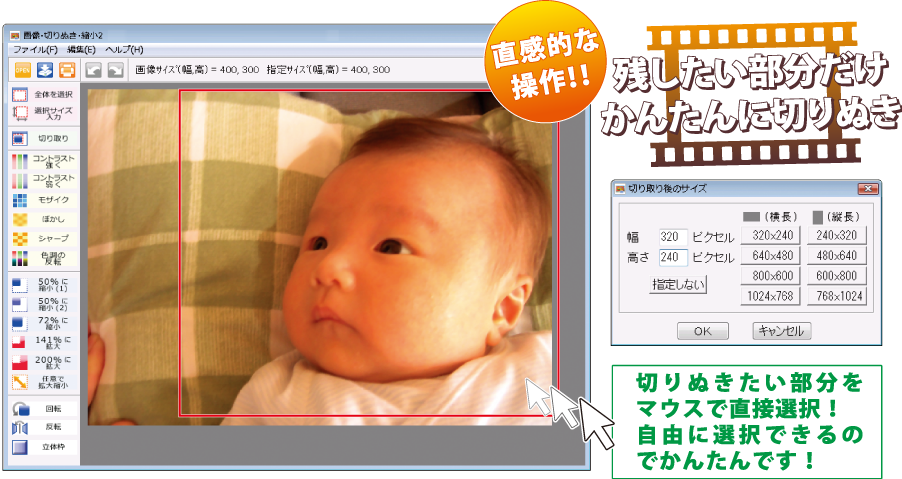 『画像・切りぬき・縮小2』は、パソコン操作に不慣れな方でも