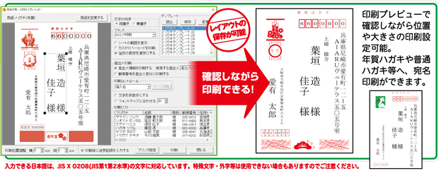 一味違ったハガキ宛名面も作成することができます。