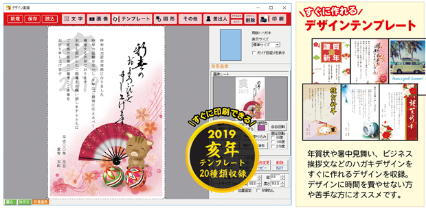 年賀状に使える2019年亥年のテンプレートを20種類収録しました。