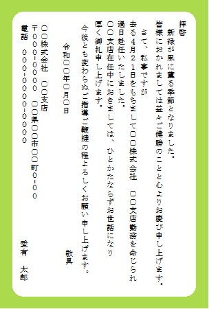 | お歳暮お礼状 | 事務所移転 | 新店舗挨拶文 | 転勤挨拶状_001 |