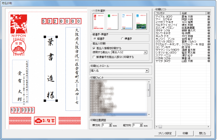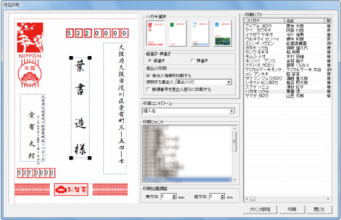 ハガキ表面の宛名印刷は、プレビュー画面で印刷した状態を確認でき、