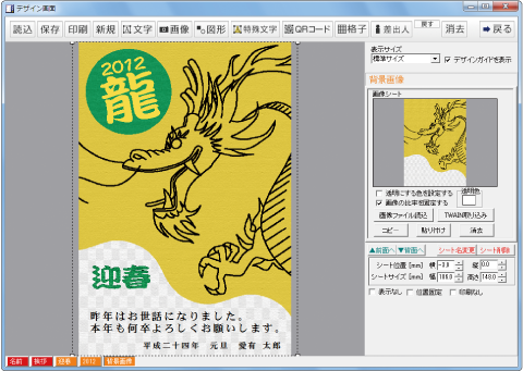 宛名印刷をしたハガキの裏面をデザインします。