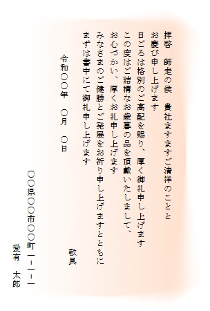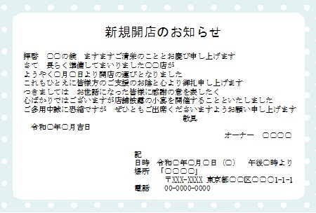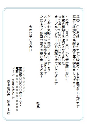 | お歳暮お礼状 | 事務所移転 | 新規開店お知らせ | 新店舗挨拶文 |
