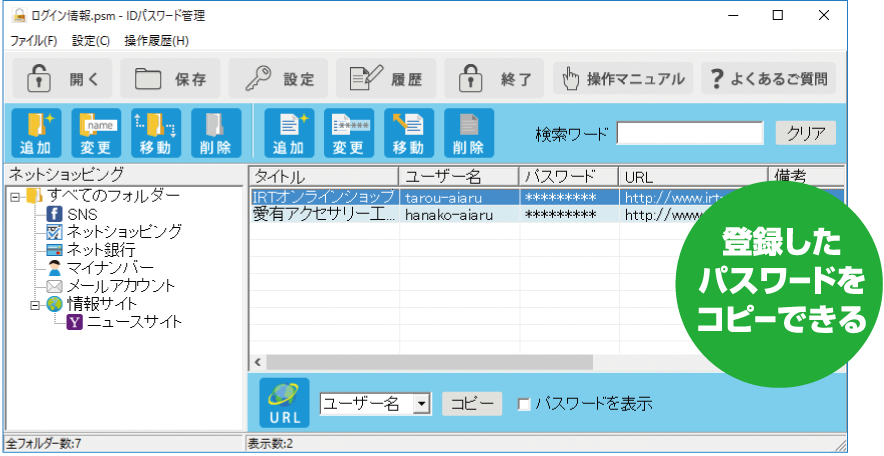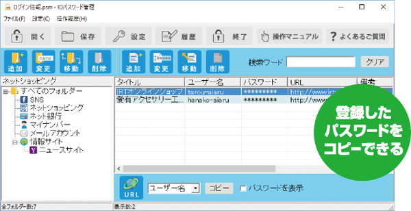 ID・パスワードを整理整頓して管理・保存できます。