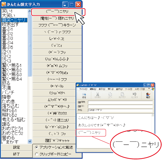 本ソフトには日頃よく使われる一般的な顔文字を中心に、