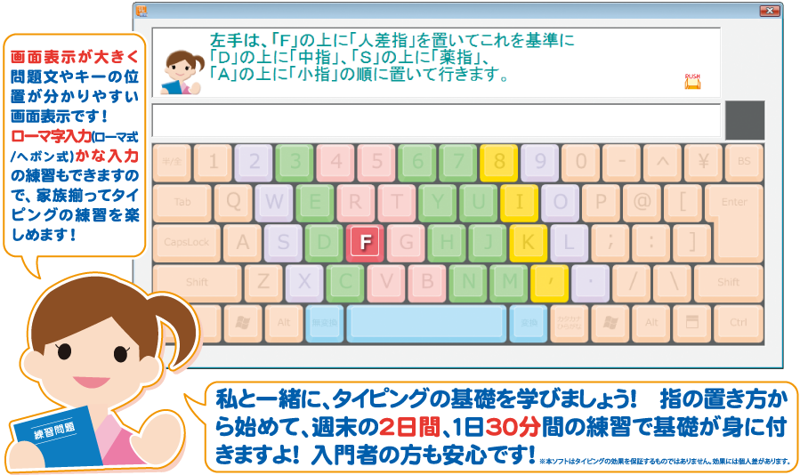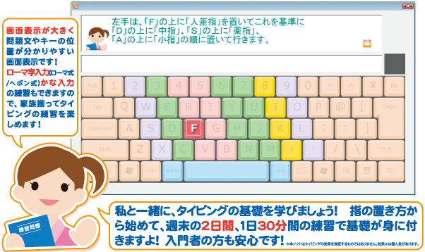 内容はタイピング基礎の学習に絞りパソコン初心者の方でも、