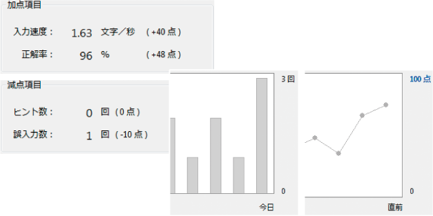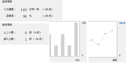 誤って入力した数なども測定内容に含まれますのでタイピングの成果を確認することができます。