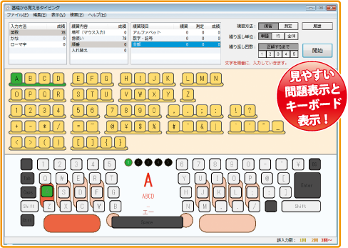 また、各キーの入力状況を色と動きで表示し、入力を間違えてもリアルタイムで
