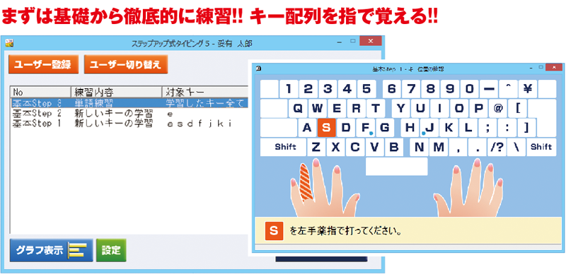 基本から着実にタイピングを身に付けることができます。