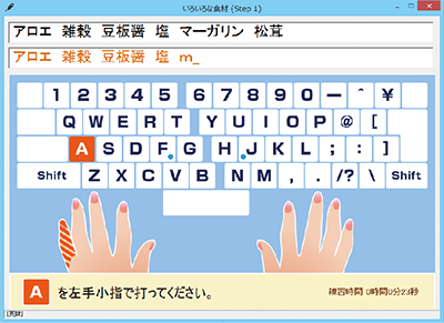 次にどのキーをどの指で打つかアドバイスがあり、